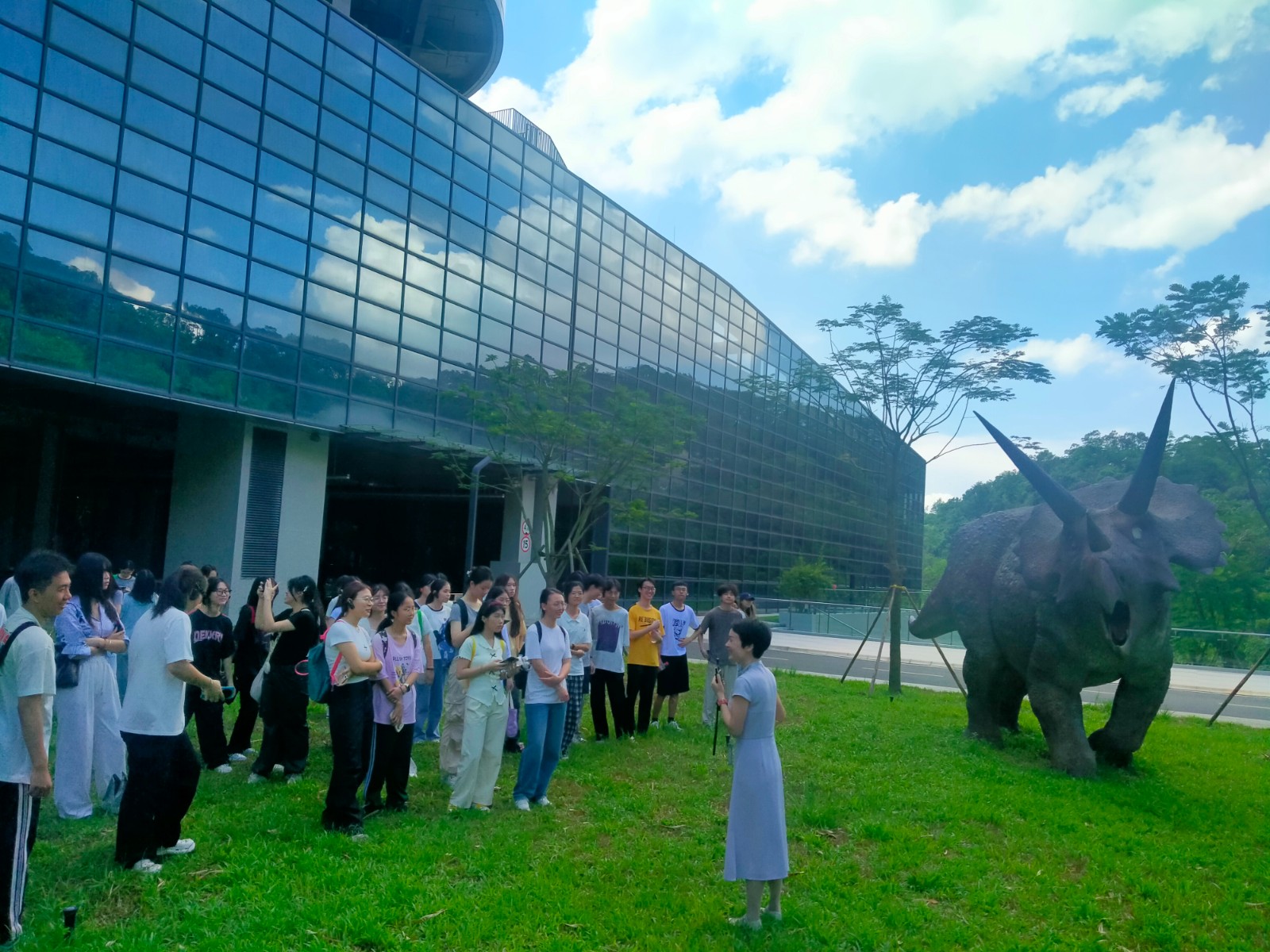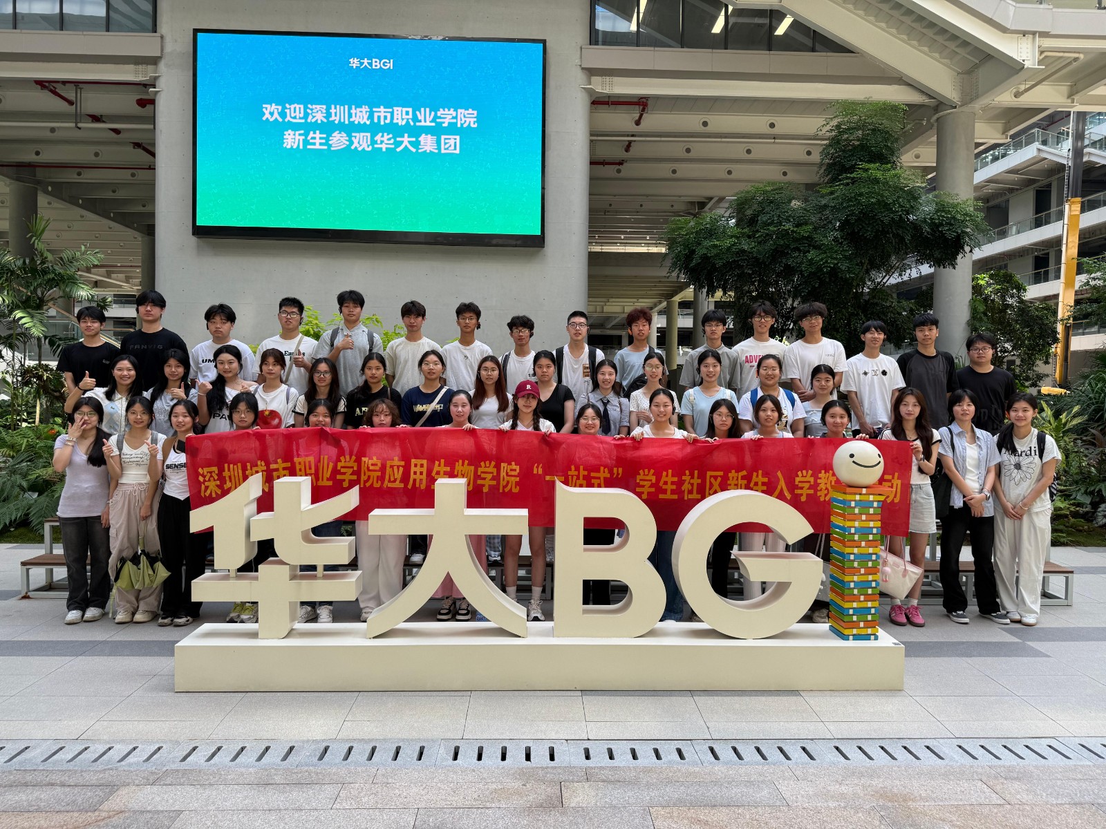 当日8时30分,唐倩、蔡晓雯、冯丽雄三位老师带领生物产品检验检疫专业3个班新生,奔赴华大基因时空中心——这座聚焦时空组学技术与生物技术应用的创新平台,也是生物检验检疫领域前沿成果的重要展示窗口。作为全球生物技术领军企业的核心研发与展示基地,华大时空中心此次为新生们打造了“从课堂理论到产业实践”的直观认知通道。