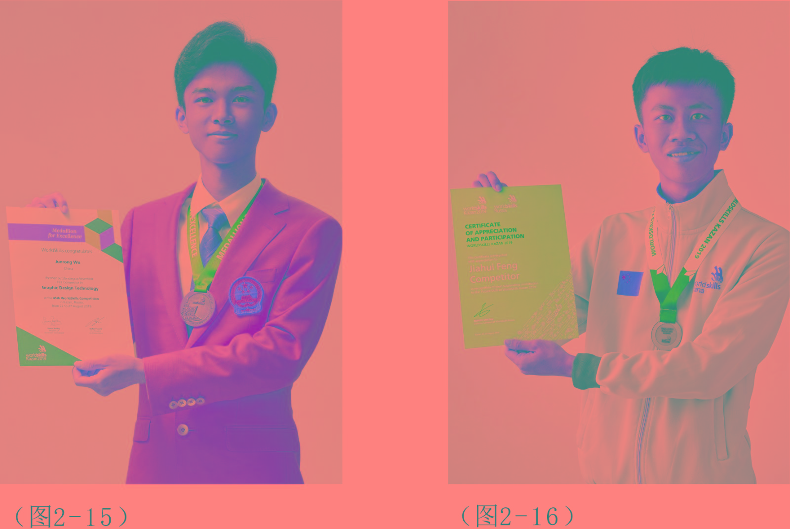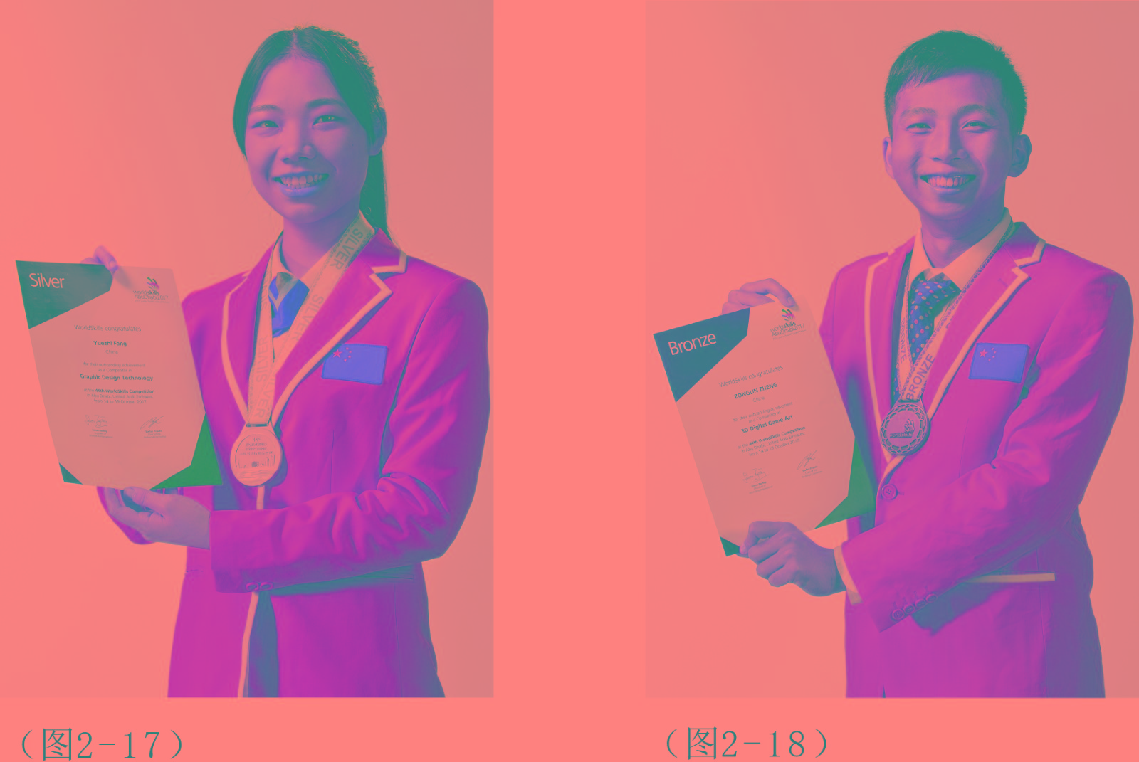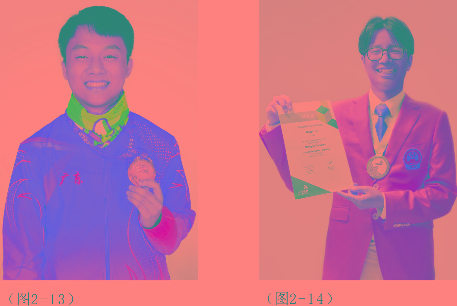 自2014年至今,设计学院学生连续参加第43届、44届、45届、46届、47届世赛中国选拔赛均获得全国第一名。2025年9月,中华人民共和国第三届职业技能大赛,杜美婷同学获得平面设计项目金牌(图2—1),黄君豪同学获得工业设计项目金牌(图2—2),丁佳烨同学获得3D游戏艺术项目铜牌(图2—3)。2024年9月,卓嘉鹏同学获得第47届世界技能大赛工业设计项目金牌(图2—4),张梓鸿同学获得第47届世界技能大赛平面设计项目银牌(图2—5)。2023年9月,中华人民共和国第二届职业技能大赛,覃秀桃同学获得工业设计技术项目金牌(图2—6)张梓鸿同学获得平面设计技术项目金牌(图2—7),刘静同学获得3D数字游戏艺术项目铜牌(图2—8)。2022年10月,罗凯同学获得“第46届世界技能大赛特别赛3D数字游戏艺术项目”金牌(图2—9),欧阳婉青同学获得“第46届世界技能大赛特别赛平面设计技术项目”优胜奖(图2—10)。2020年12月,中华人民共和国第一届职业技能大赛,黄玉婷同学获得平面设计技术项目金牌(图2—11),罗凯同学获得3D数字游戏艺术项目金牌(图2—12),卓嘉鹏同学获得工业设计技术项目金牌(图2—13)。2019年8月代表中国出征俄罗斯喀山,参加第45届世界技能大赛,何定钧获得3D数字游戏艺术项目银牌(图2—14),吴俊荣获得平面设计技术项目优胜奖(图2—15),冯嘉辉同学获得第45届世界技能大赛•未来技能•工业设计技术项目银牌(图2—16)。2018年6月,学生吴俊荣、何定钧分别获得2018年中国技能大赛平面设计技术、3D数字游戏艺术全国选拔赛两项冠军,于2017年10月,方悦芝代表中国参加第44届世赛平面设计技术项目的竞赛,获得银牌(图2—17);游戏设计专业学生郑宗林获得第44届世赛3D数字游戏艺术项目铜牌(图2—18); 2016年8月,方悦芝获得2016年中国技能大赛平面设计技术项目全国第一名,2015年8月,设计学院学生马韦欣被选拔为中国选手代表,是第一位登上世赛舞台的深圳学生,并代表全球参赛选手在43届世赛开幕式发言。第一次参加第43届世赛平面设计技术项目的竞赛,获得优胜奖(图2—19),世界排名在第6位。
