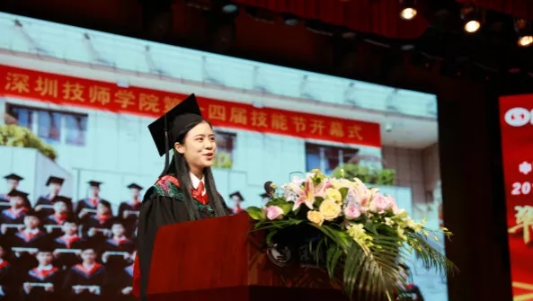 成亚萍院长动情致辞:“同学们,希望你们为梦想努力时,铭记自己的责任。责任是一种能力,又远胜于能力;责任是一种精神,更是一种品格。责任无处不在,存在于每一个角色。我们要尽到对自己的责任,努力奋斗,不负刻苦求学,不负青春梦想;要尽到对单位的责任,敬业务实、诚实肯干,创造价值;要尽到对家庭的责任,懂得感恩,守护亲情;要尽到对国家的责任,胸怀天下,造福社会”。“希望你们为梦想努力时,脚踏实地地奋斗。天下大事必作于细,古今事业必成于实。希望你们能从平凡处开始,在实干中起步,坚持自己的选择,耐得住寂寞,经得起磨练,成就自己的事业。我相信,深圳技师学院的品牌将因为你们而更加响亮”。