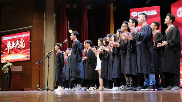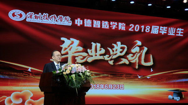 “转眼间,你们毕业了,我们心中盈满了不舍,你们眼中也充满了留恋。希望在今天,大家最真挚的祝福可以传递到你们的心间,伴你们走上人生的另一方沃土。”在不舍中,毕业典礼主持人——中德智造学院副院长袁军宣布2018毕业典礼正式开始!